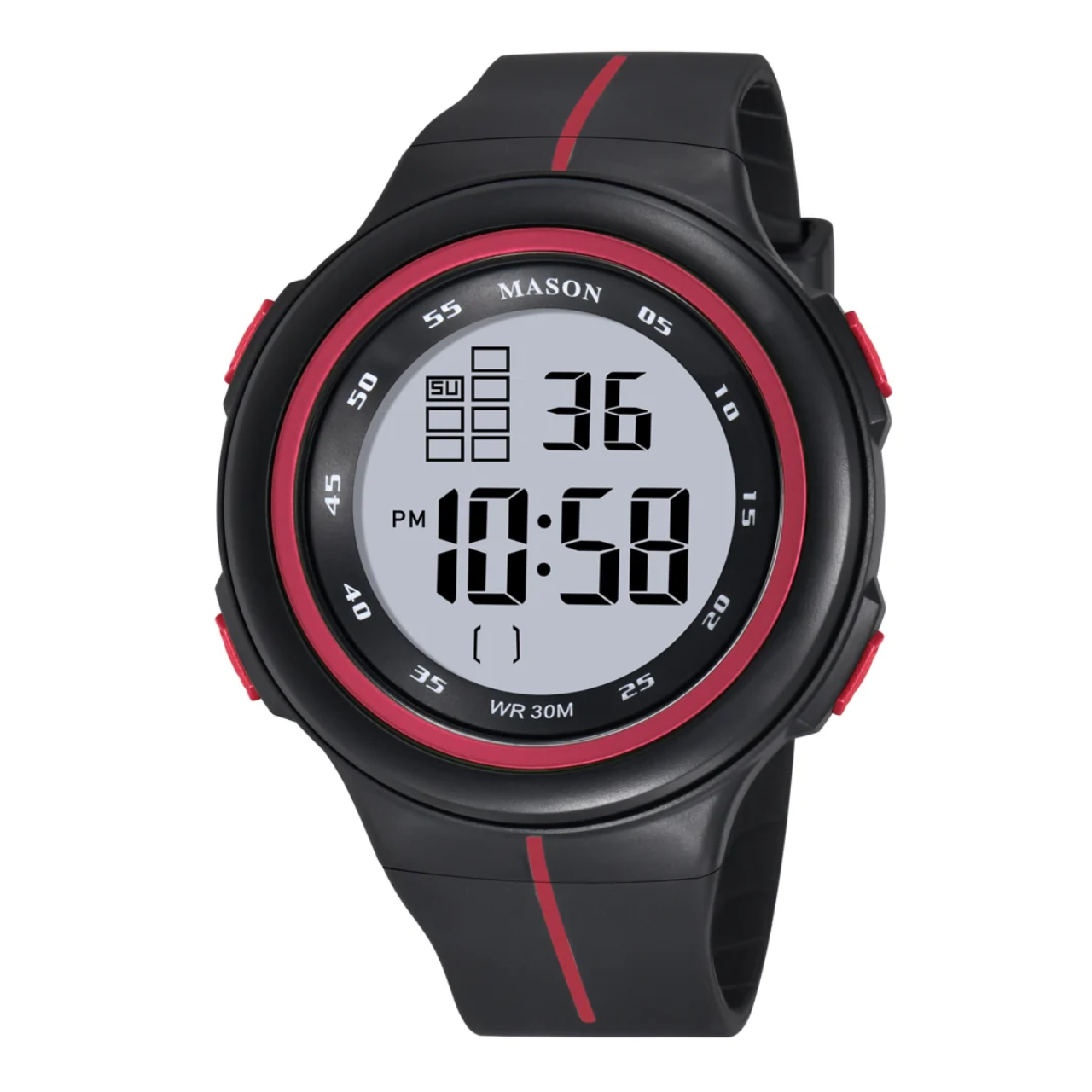 Feature : Date, Day, LED backlight, and Alarm